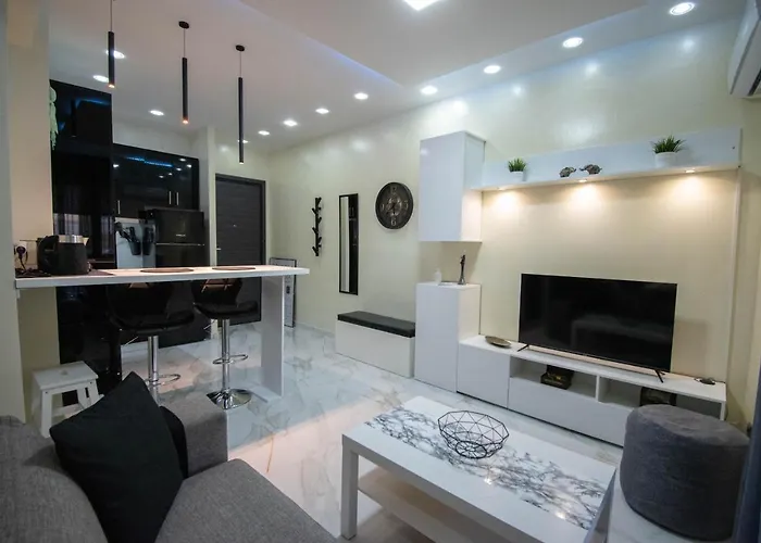 Along with coffee and tea making equipment, the apartment is equipped with a full kitchen that includes a microwave, a refrigerator, and kitchenware. The nearest bus stop Ionos Dragoumi is in the vicinity of Emas Apartments.